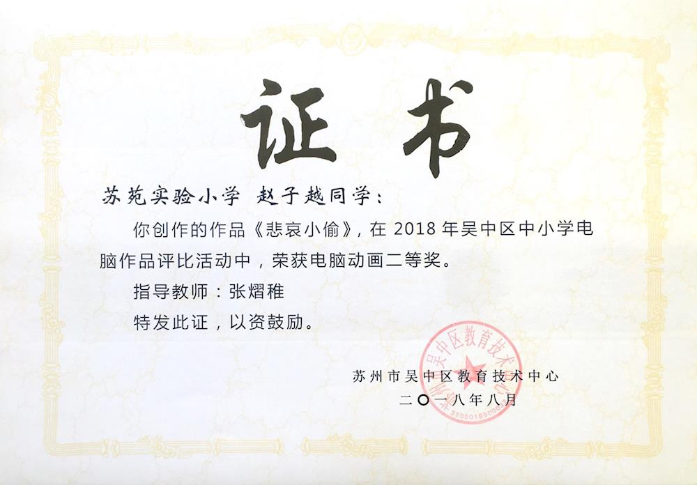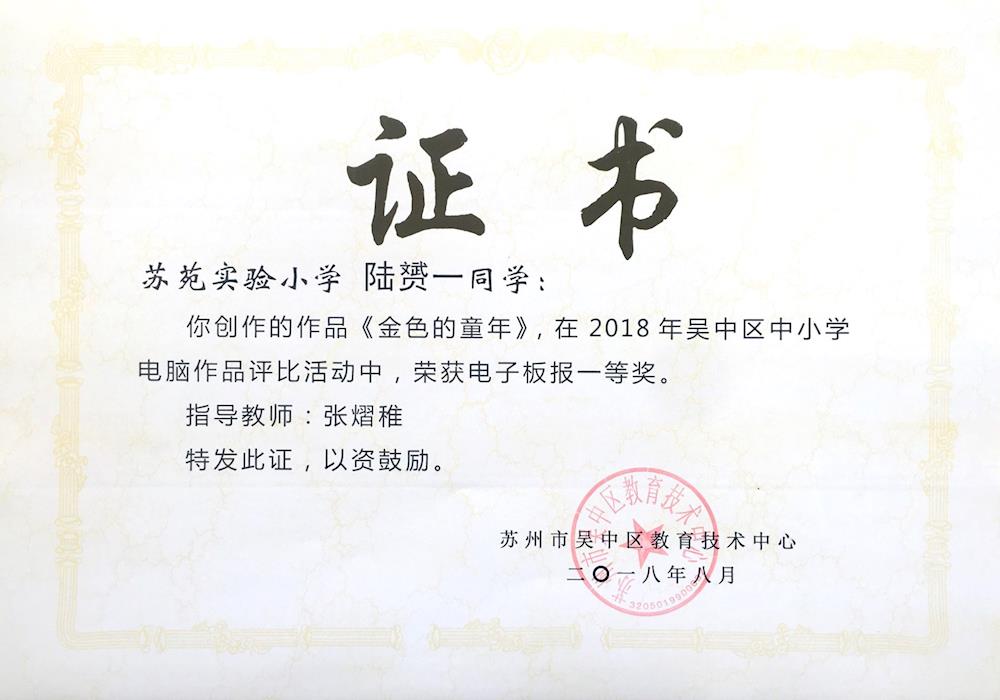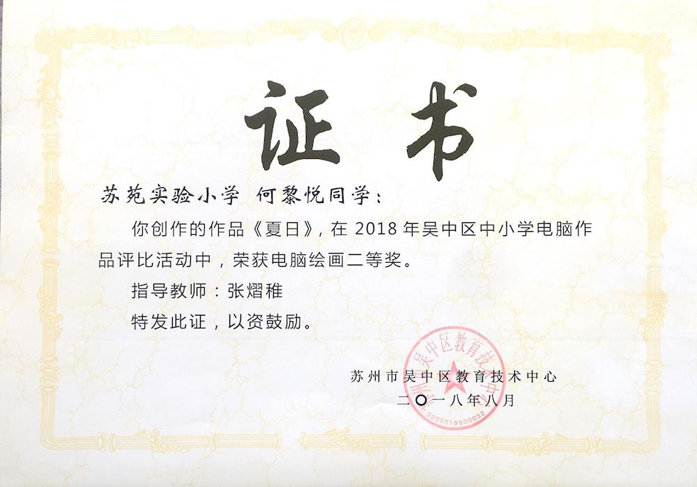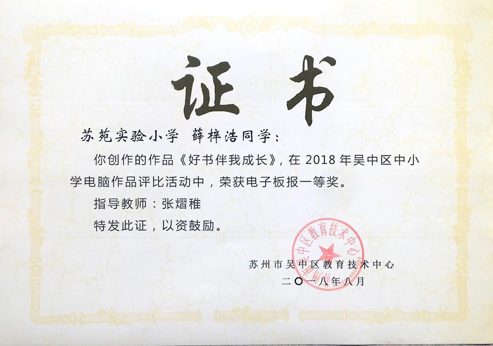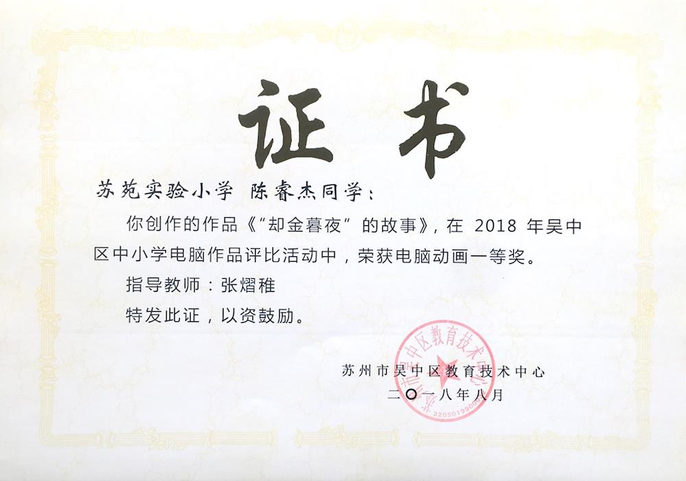 我校在2018年吴中区中小学生电脑制作活动中成果喜人! 来源: 发布时间:2018-09-01 10:50:13 浏览次数: 次 【字体:小 大】 一等奖五7 陈睿杰 电脑动画《“却金暮夜”的故事》五4 薛梓浩 电子板报《好书伴我成长》四5 陆赟一 电子板报《金色的童年》二等奖六3 赵子越 电脑动画《悲哀小偷》五8班 何黎悦 电脑绘画《夏日》 分享到: 【打印正文】