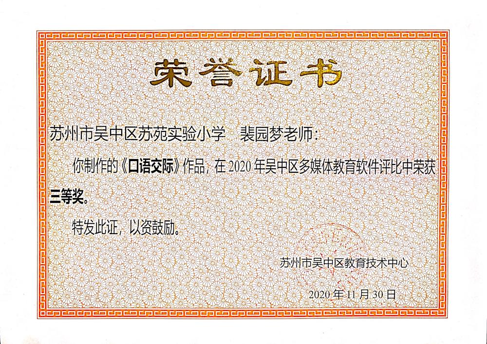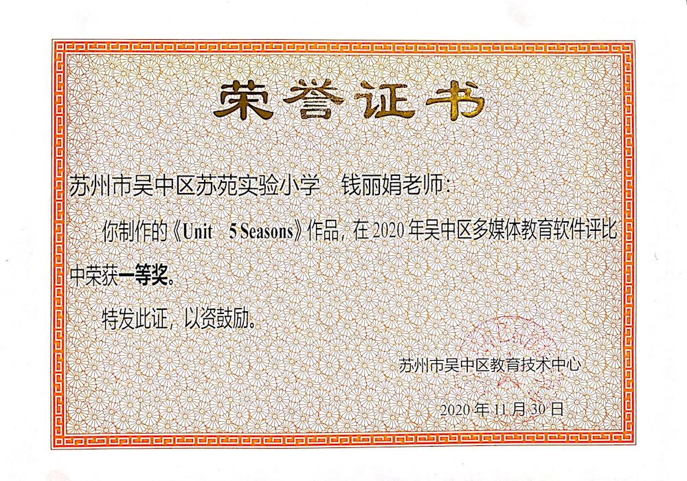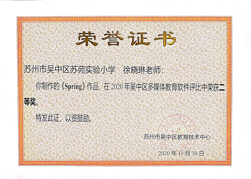 我校在2020年吴中区多媒体教育软件评比中成绩喜人!