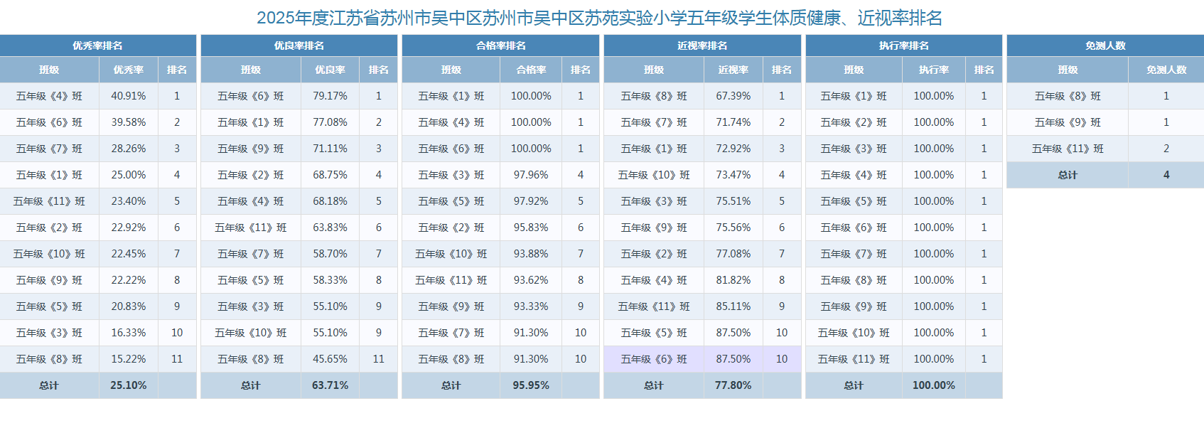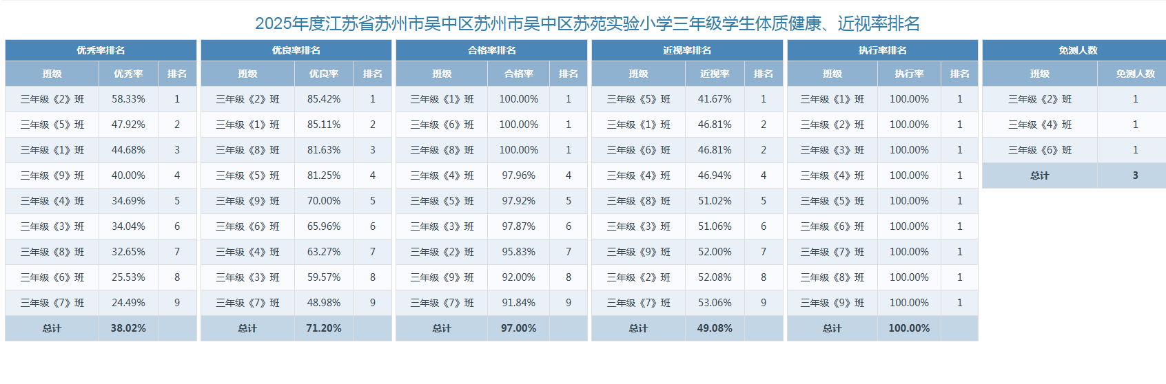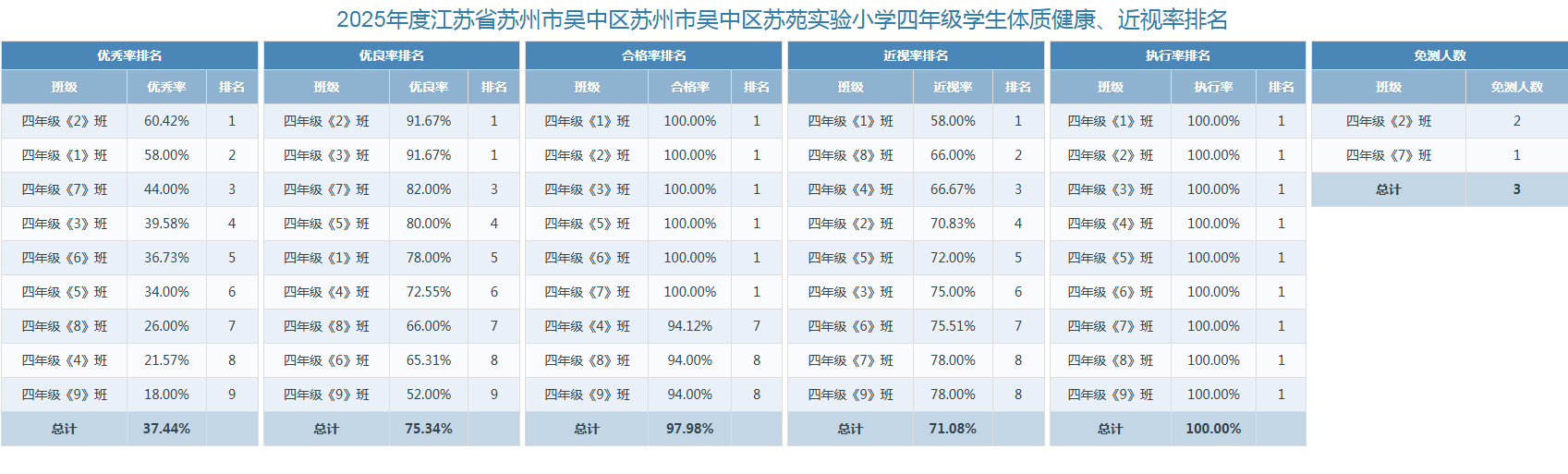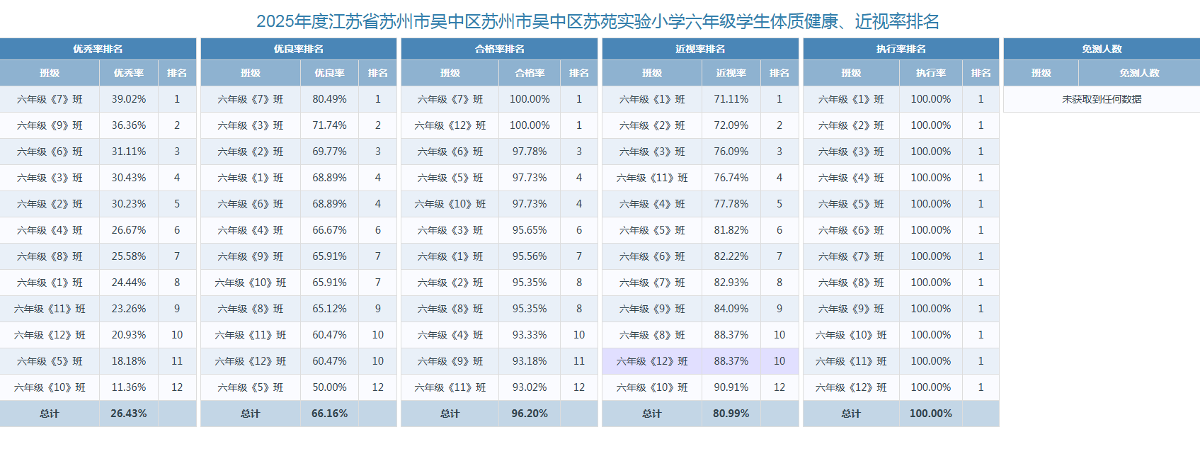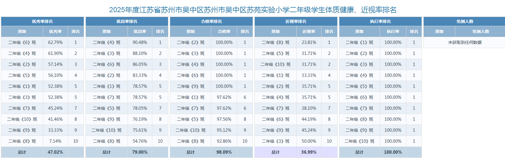 2025年苏苑实验小学体质健康、近视率排名情况